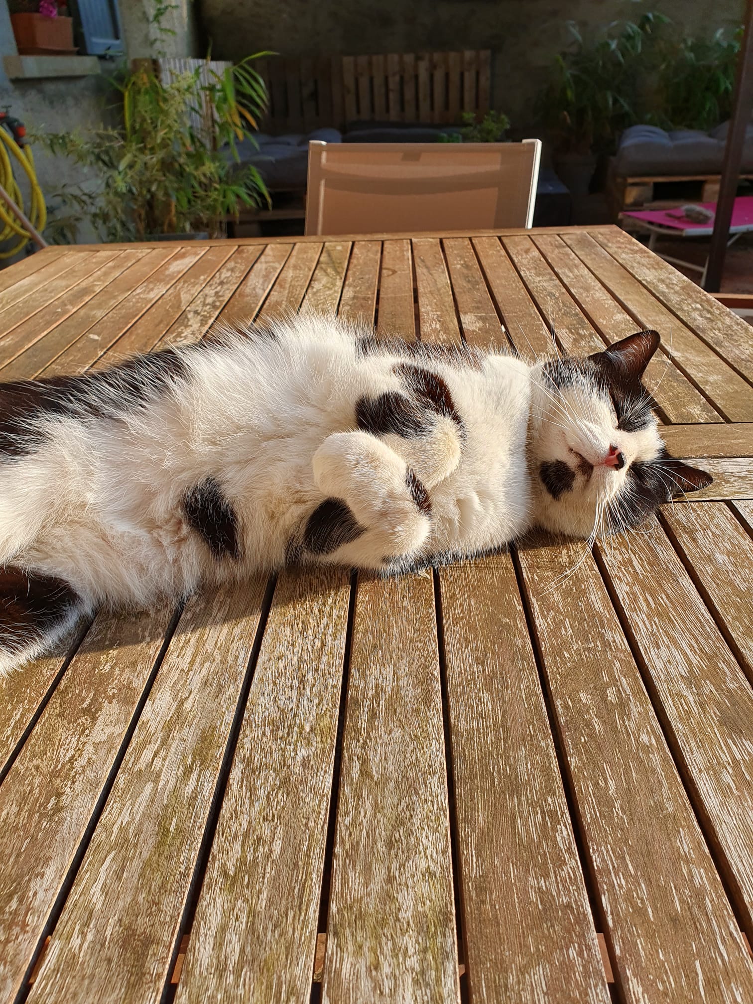 Jamais loin lorsque je travaille, souvent une patte posée sur le clavier quand je reponds à vos mails... Mais rassure toi, c'est moi qui gère!
